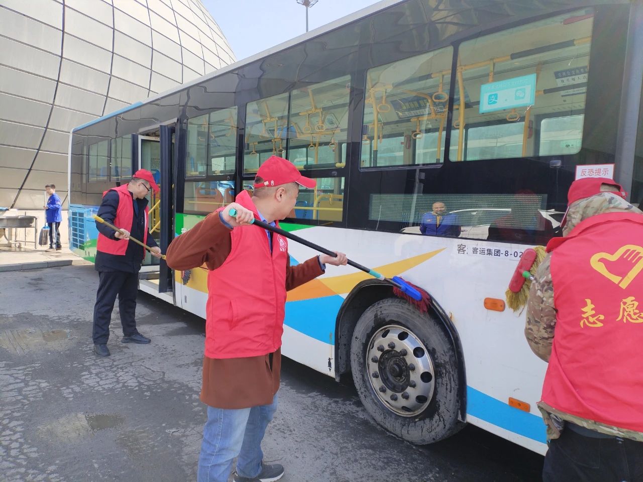 活動當(dāng)天,各車隊管理人員和駕駛員早早來到車隊,分成幾個小組,分別對場區(qū)、候車亭以及公交車廂進行了全面清潔。志愿者們手持掃帚、抹布、消毒液等工具,認真清理場區(qū)內(nèi)的垃圾、雜物,擦拭候車亭的座椅和宣傳欄,并對公交車廂內(nèi)的座椅、扶手、車窗等部位進行了細致消毒和清潔。
