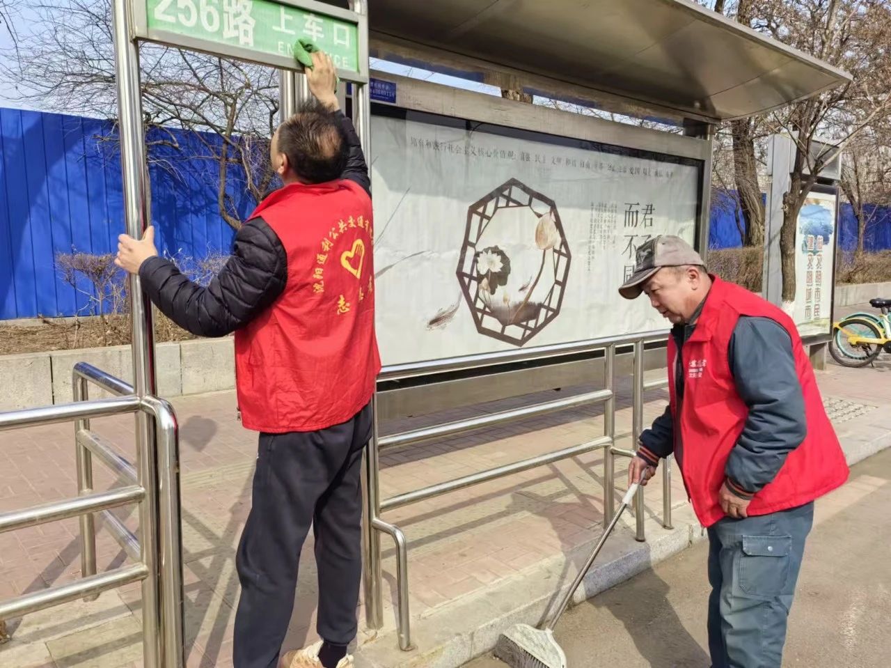 路過的市民看到志愿者忙碌的身影連連點贊,還有熱心市民主動加入志愿隊伍出一份力。最終在全體黨員志愿者和熱心市民的共同努力下累計清理垃圾10余袋,處理小粘貼20余處,場區(qū)和候車廊衛(wèi)生煥然一新。