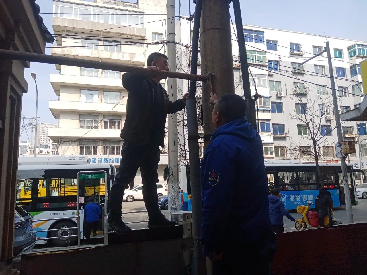 3月15日,397路車隊駕駛員張政仙用一把扳手、一顆熱心,將雷鋒精神化作實際行動,主動利用站停間隙時間幫忙加固維修站房。