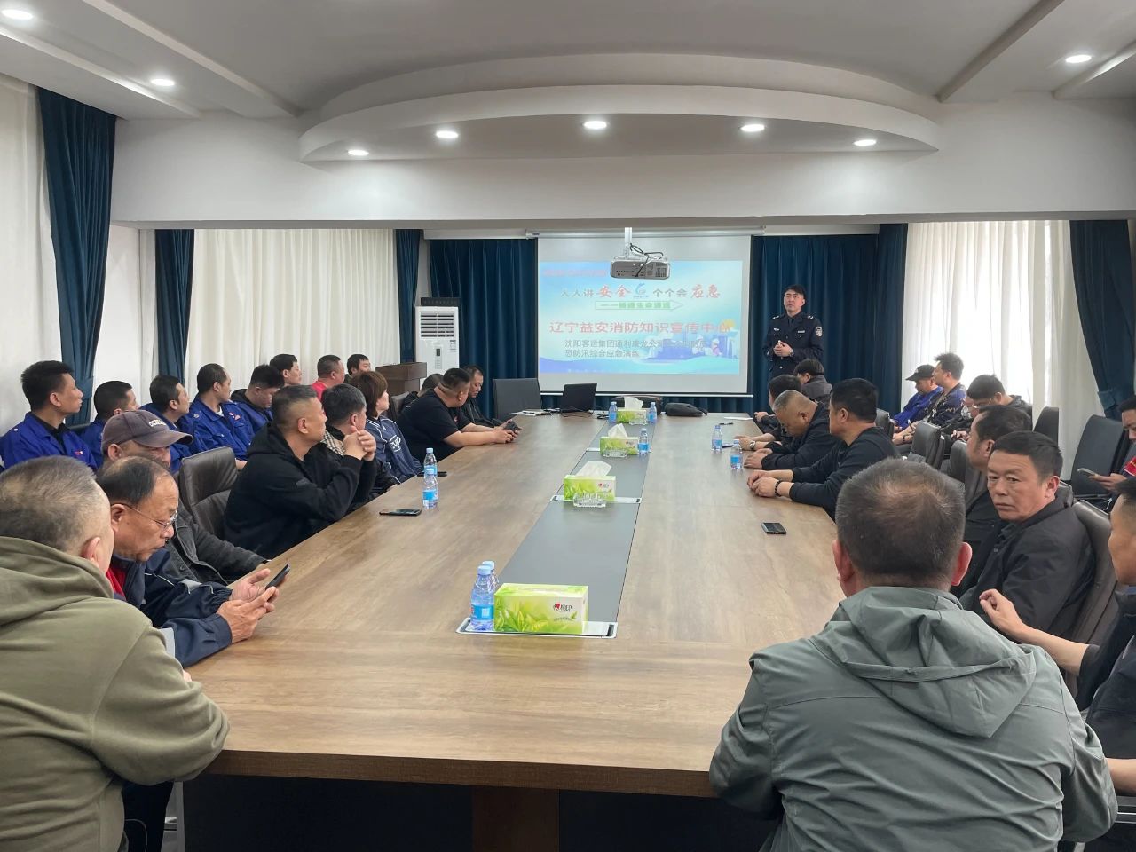 理論培訓(xùn)環(huán)節(jié),遼寧益安消防知識(shí)宣傳中心的孫教官結(jié)合多媒體課件演示,通過(guò)典型火災(zāi)案例解析滅火器選用要訣與逃生路線規(guī)劃要點(diǎn)等消防知識(shí)。王處長(zhǎng)針對(duì)場(chǎng)站安保盲區(qū)排查、危險(xiǎn)品識(shí)別技巧進(jìn)行專(zhuān)項(xiàng)指導(dǎo),并就五一期間客流高峰期的應(yīng)急處置流程作出明確部署。