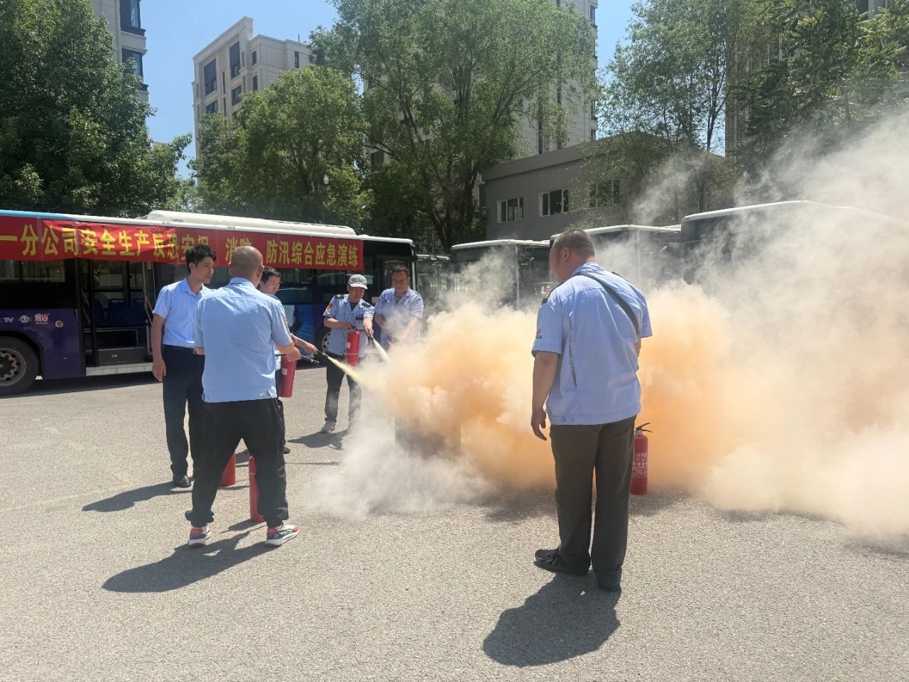 為提升職工消防反恐安保意識和應急處置能力,一分公司于6月6日組織開展了安全生產(chǎn)、反恐安保、消防及防汛綜合應急演練。市公交軌道分局王兆民處長、公司負責人、相關(guān)部門負責人及駕駛員代表參加。